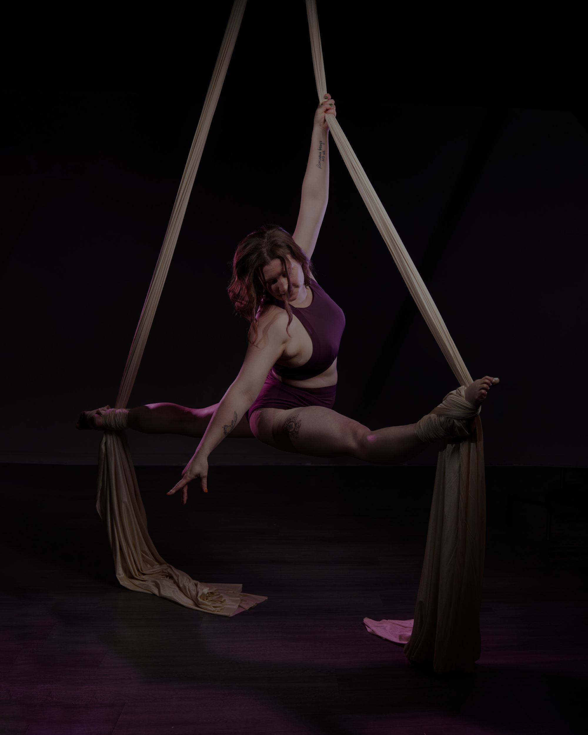 Aerial silks challenge strength, coordination, and focus while opening the door to beautiful climbs, wraps, and suspended shapes.